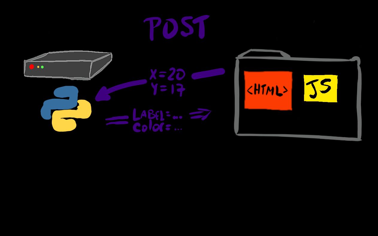 Now that the application has been loaded, we need to be able to make it responsive to our inputs. If we hover on a particular point which is used as an input to some calculation and has an event listener attached, the Flask backend needs to be able to read that input and return a response object. The sending of the data is done via POST requests.
