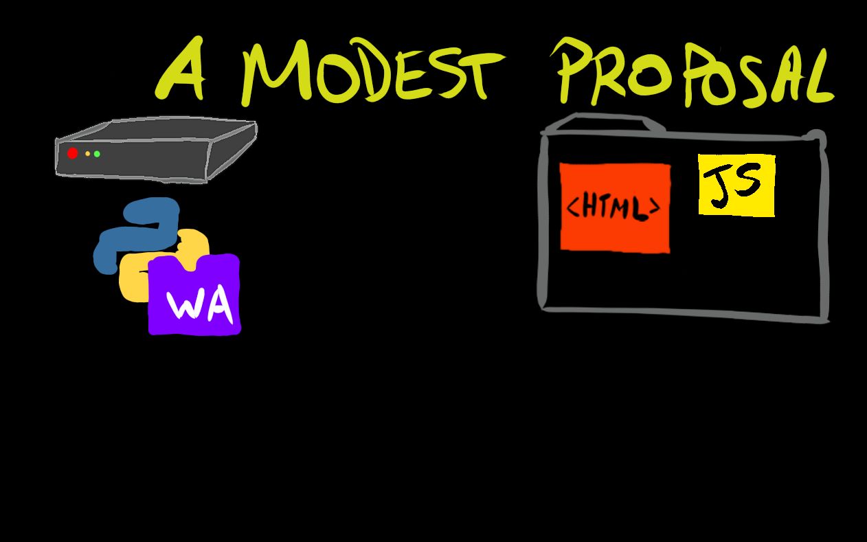 Back to WebDash. Trying to solve this problem took us down a destructive path of trying to emulate entire *nix operating systems in WebAssembly (thank you, Fabrice Bellard), and using that virtual system to then install Python, create a virtual environment, run Flask and then somehow, once that process is running, serve a web site. Although we got surprisingly far using that approach, at some point it became unwieldy to bundle and operate. We had to try something else.
